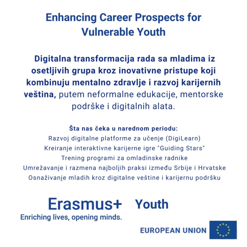 Projekat je finansiran od strane Erasmus+ programa Evropske unije. Sadržaj ovog projekta predstavlja isključivo stavove autora i Evropska komisija ne može biti odgovorna za bilo kakvu upotrebu informacija koje sadrži.